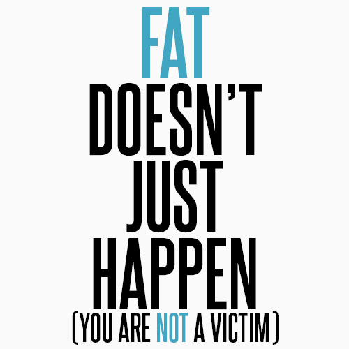 So here’s what you need to know. Fat doesn’t just happen, and you are not a victim. There are no tiny creatures that creep out from under your bed at night and sew your clothes tighter. There is no special genetic code that forever predestines you to lose the battle against fat, and aside from your wedding day, no one ever shoves cake down your throat without your permission. Don’t be a victim of the victim mentality.