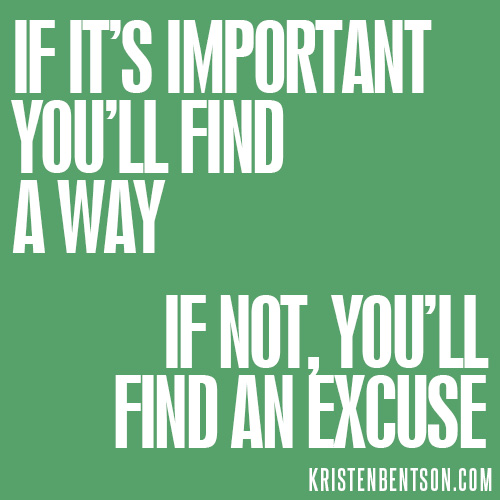 If it's important you'll find a way If not you'll find an excuse | KristenBentson.comThe end of June 2012 I made the choice to change my life for good.  I am a mother to two little active boys (4 yrs. and 20 months), a wife, and a teacher.  To say I’m a busy working mom can sometimes be an understatement!  As I am watching my boys quickly grow I often think about the numerous things I would like to do with them before they are all grown.  Some of the activities I would like to be able to do with them when they are at this young age I noticed I was getting too big to do, such as being able to sit on a swing or slide down the sliding board with them.  They are just both at the age at which they enjoy amusement parks – and I want to be by their sides riding all the rides I can with them.   And lets not forget energy!  I NEED energy to keep up with them!
